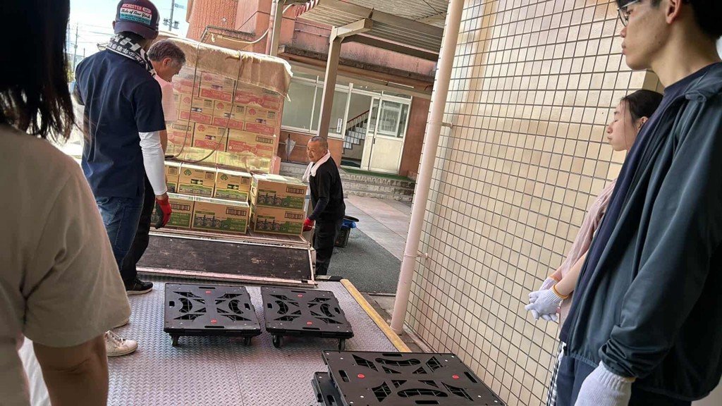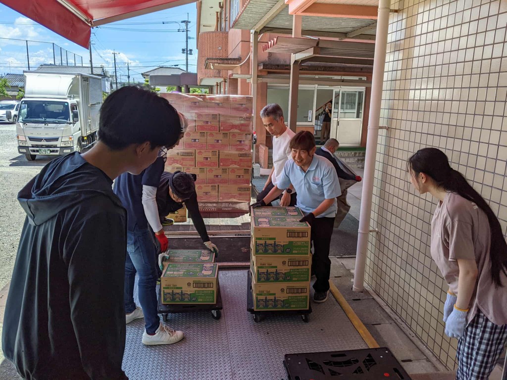 今回も、受け取りの作業に佐賀女子短期大学と佐賀大学から学生さんがボランティアで参加してくれました。