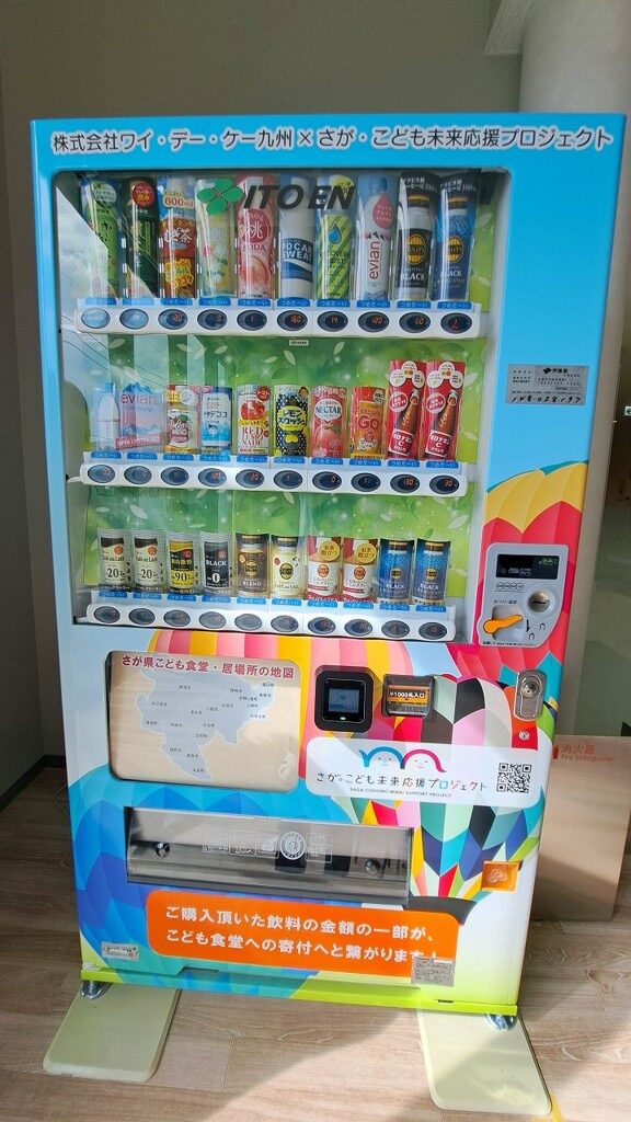 佐賀県こどもの居場所応援団企業である株式会社ワイ・デー・ケー九州様の新社屋「テクニカルセンター」内に、購入額の一部がこども食堂・こどもの居場所への寄付になる自動販売機を設置いただきました!