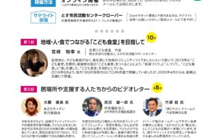 2020年11月6日に開催しました「第2回 居場所と地域がつながるマッチング交流会」。 2回目となるオンラインでの交流会。ご参加いただいた皆様のご協力のもと、楽しい交流会となりました。 ありがとうございました。 第1部 地域・人・食でつ [...]