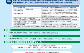 応募受付〆切:3月31日(火) 2020年度(第18回)ドコモ市民活動団体助成事業募集 NPO法人モバイル・コミュニケーション・ファンド(MCF)は、豊かで健全な社会の実現に向けて、全国の市民活動を支援しています。 それぞれの地域で、将来の担い手である子どもたちの健やかな育ちを応援する活動に取り組んでいる団体からの応募を受け付けて [...]